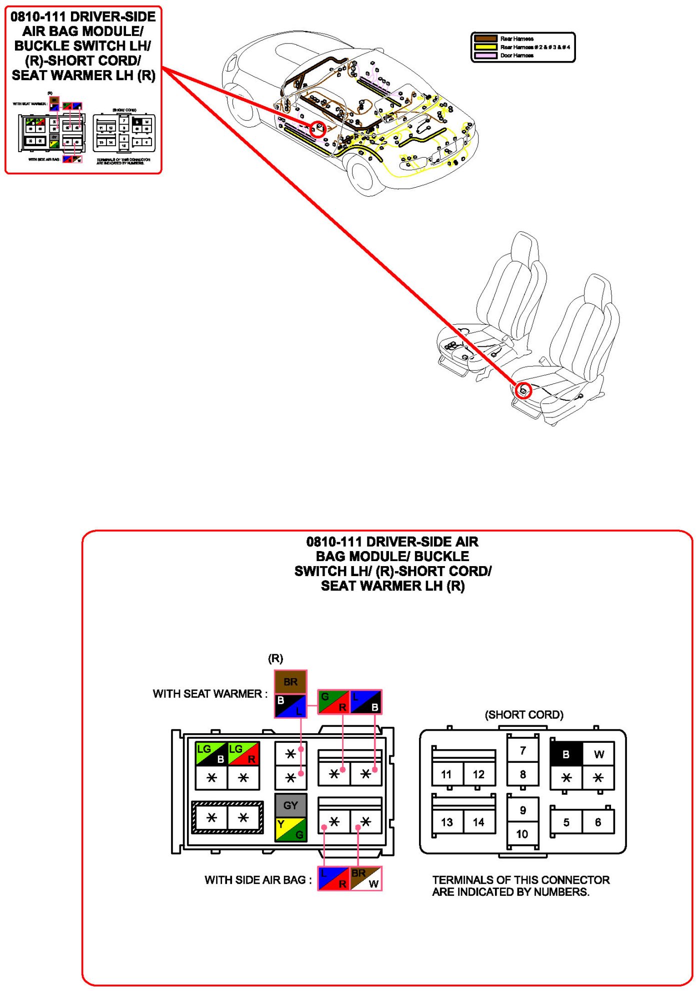 Driver-Side Air Bag Module/Buckle Switch LH/Short Cord/Seat Warmer LH:
