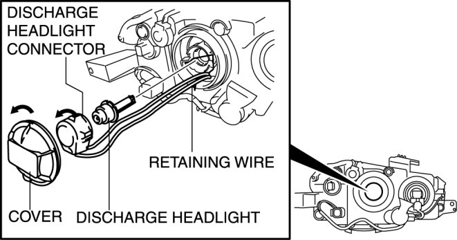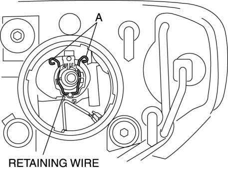 1. Press sections A to release the bulb retaining wire and remove the discharge headlight.