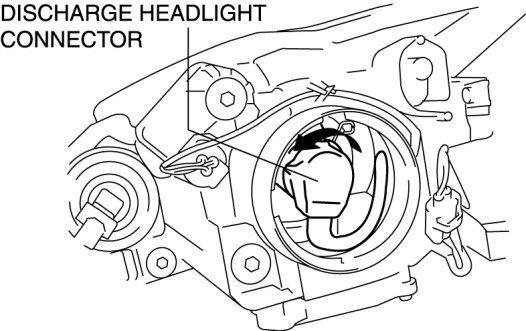 1. Rotate the discharge headlight connector in the direction of the arrow shown in the figure to remove it.