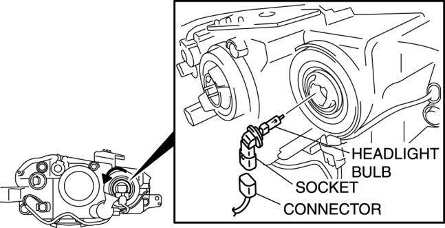 4. Remove the socket, then remove the headlight bulb.