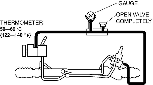 9. Turn the steering wheel fully to the left and right, then measure the fluid pressure generated at the gear housing.