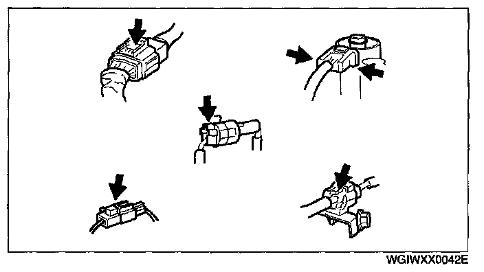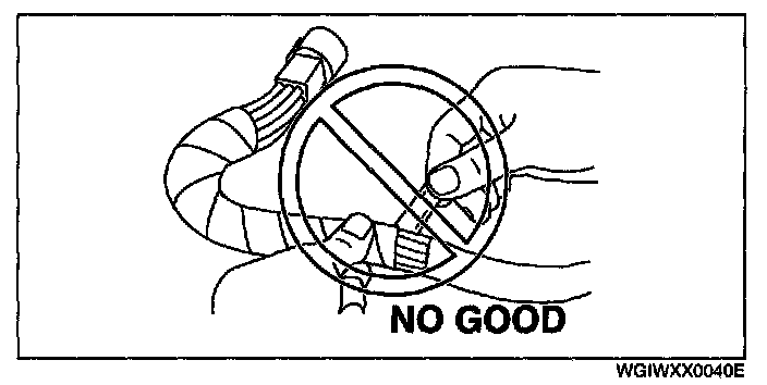- Inspect the terminals of waterproof connectors from the connector side since they cannot be accessed from the wiring harness side.