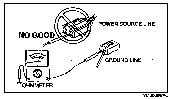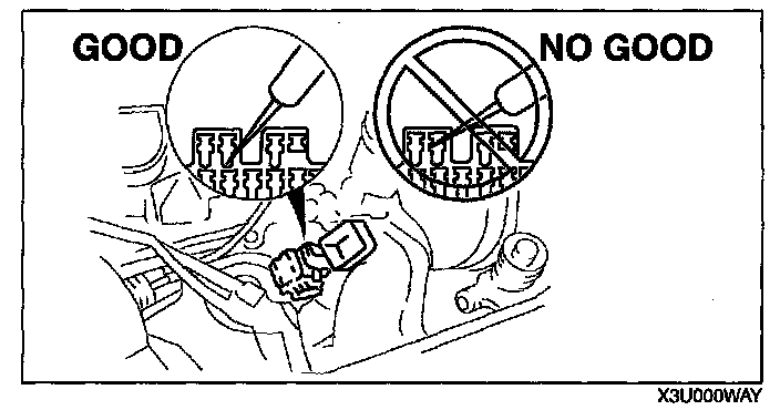 - To prevent damage to the terminal, wrap a thin wire around the tester probe before inserting into terminal.