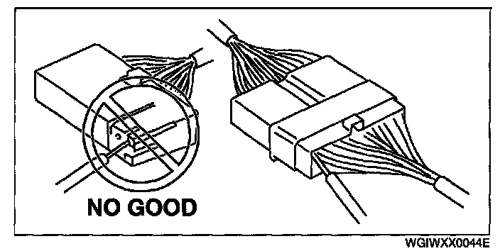 - When a tester is used to inspect for continuity or measuring voltage, insert the tester probe from the wiring harness side.