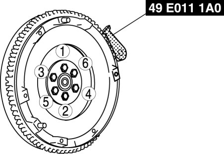 . Gradually tighten the flywheel lock bolts in a crisscross pattern.