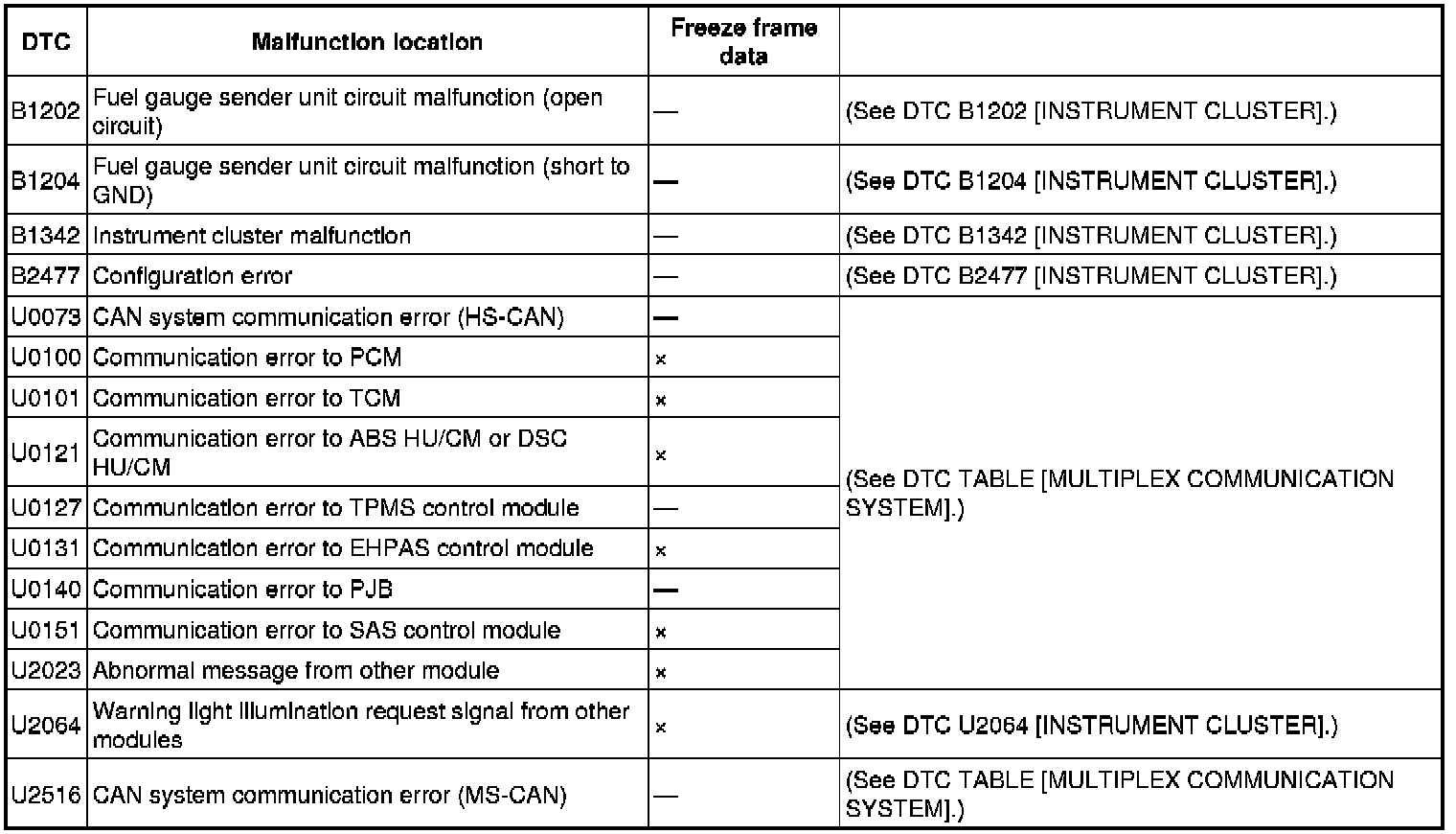 DTC TABLE [INSTRUMENT CLUSTER]
