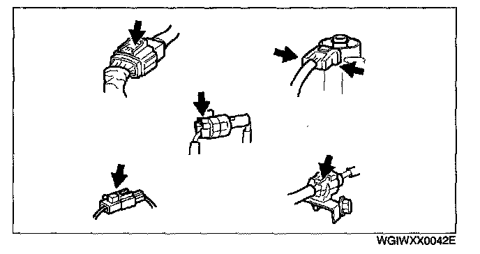 - When disconnecting connector, grasp the connectors, not the wires.
