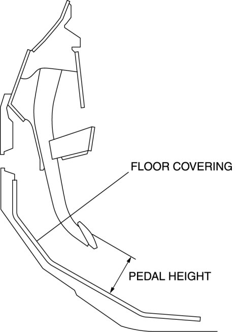 1. Measure the distance from the center of the upper surface of the pedal pad to the floor covering and verify that it is as specified.