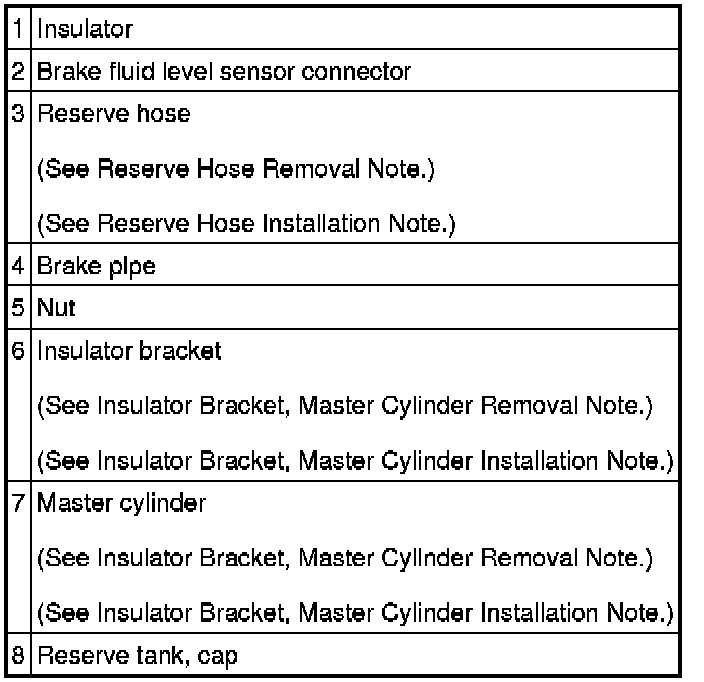 Insulator Bracket, Master Cylinder Removal Note