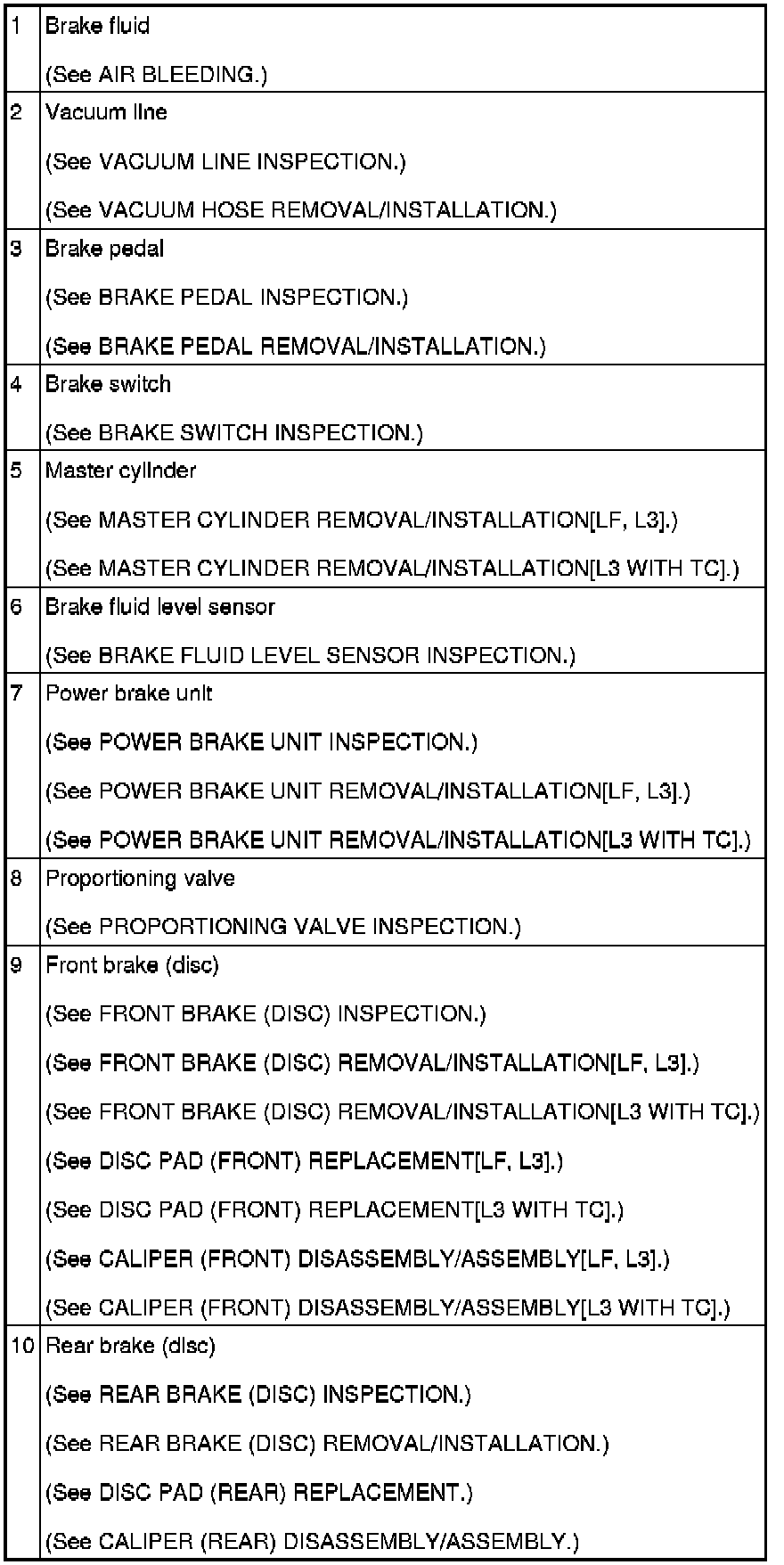 CONVENTIONAL BRAKE SYSTEM LOCATION INDEX