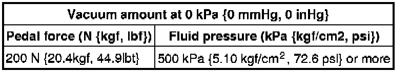 1. Start the engine. Depress the brake pedal when the vacuum reaches 66.7 kPa {500 mmHg, 19.7 inHg}.