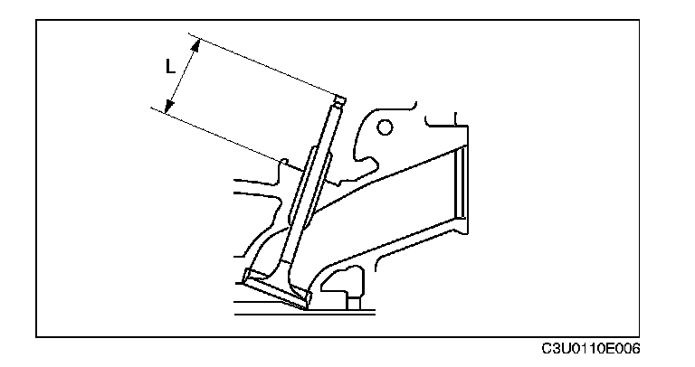 3. Inspect the valve seat for sinkage. Measure the protruding length (dimension L) of the valve stem using a valve of standard length.