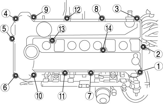 1. Loosen the cylinder head cover bolts in the order shown in the figure.