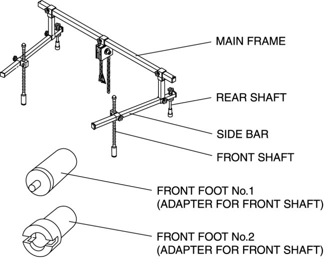 c. Install front foot No.2 to the left/right front shaft of the SST, then align the groove of the front shaft of the SST with the folded up part of the vehicle as shown in the figure.