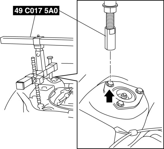 a. Install the right rear shaft of the SST to the bolt of the right shock absorber as shown in the figure.
