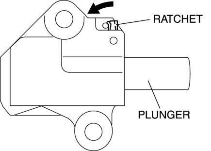 4. Press-in the plunger until the ratchet position is as indicated in the figure, and then insert the wire to lock the plunger.
