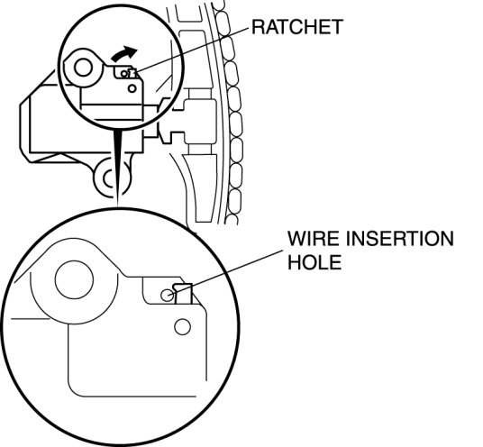 3. Remove the wire or paper clip from the chain tensioner piston and apply tension to the timing chain.