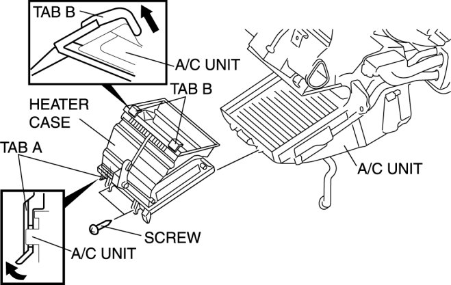 - Pull up tabs B in the direction shown by the arrow in the figure and remove it from the A/C unit.
