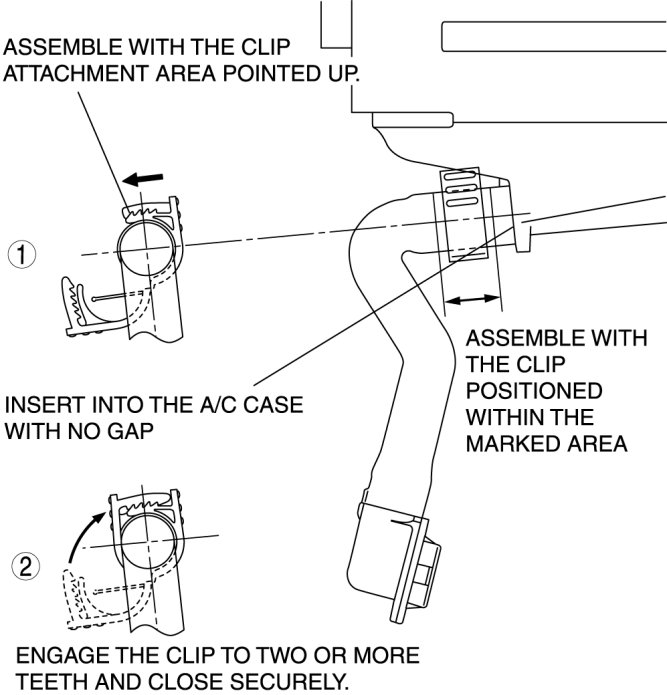 12. Disconnect the air mix wire and airflow mode wire from the A/C unit with the wire clamps installed. (Manual air conditioner) Climate Control Unit Removal [Manual Air Conditioner] Climate Control Unit Installation [Manual Air Conditioner]