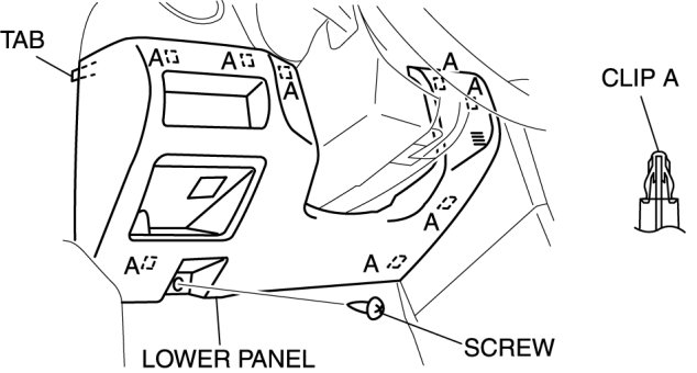 6. Pull the lower panel outward, and detach clips A and tab.