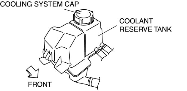 8. Refill the engine coolant into the coolant reserve tank up to the F mark on the tank.