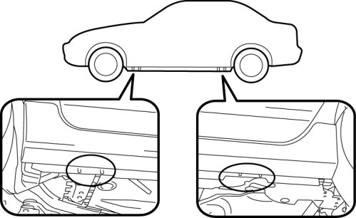 JACKING POSITIONS, VEHICLE LIFT (2 SUPPORTS) AND SAFETY STAND (RIGID RACK) POSITIONS
