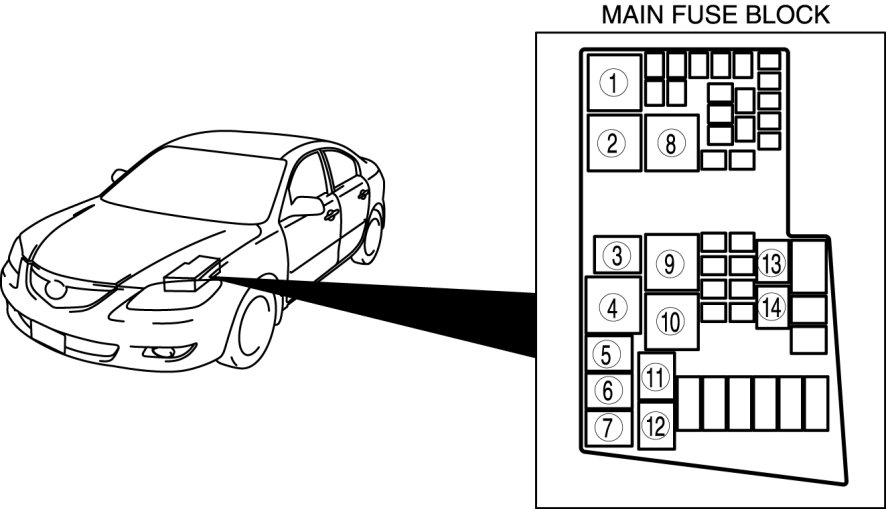 Main Relay (Computer/Fuel System): Locations