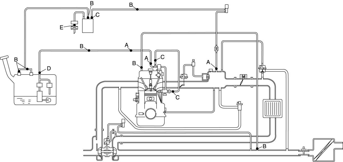 - To prevent evaporative gas leakage, be sure not to damage the connecting part between the charcoal canister and pipe, and the locks between the quick release connector and retainer. If any of them are damaged, replace the charcoal canister or hose with a new one.
