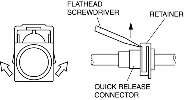 - The quick release connector can be removed by pushing the center of the retainer tabs.