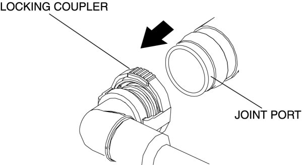 - The locking coupler has two internal locking tabs which retain the joint port. Be sure that the squeezing place on the locking coupler is squeezed until it can be released from the joint port.