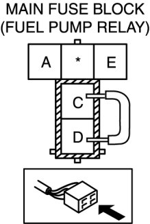 4. Using a jumper wire, short fuel pump relay terminals C and D and connect the negative battery cable to start the fuel pump.