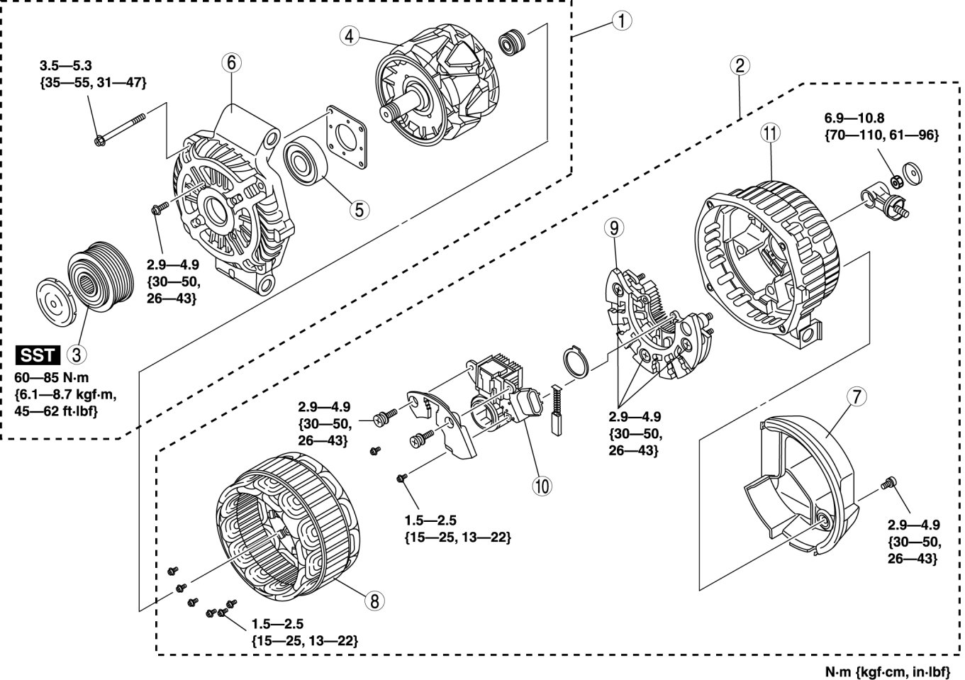 1 60-85 Nm {6.1-8.7 kgf-m, 45-62 ft-lbf}
