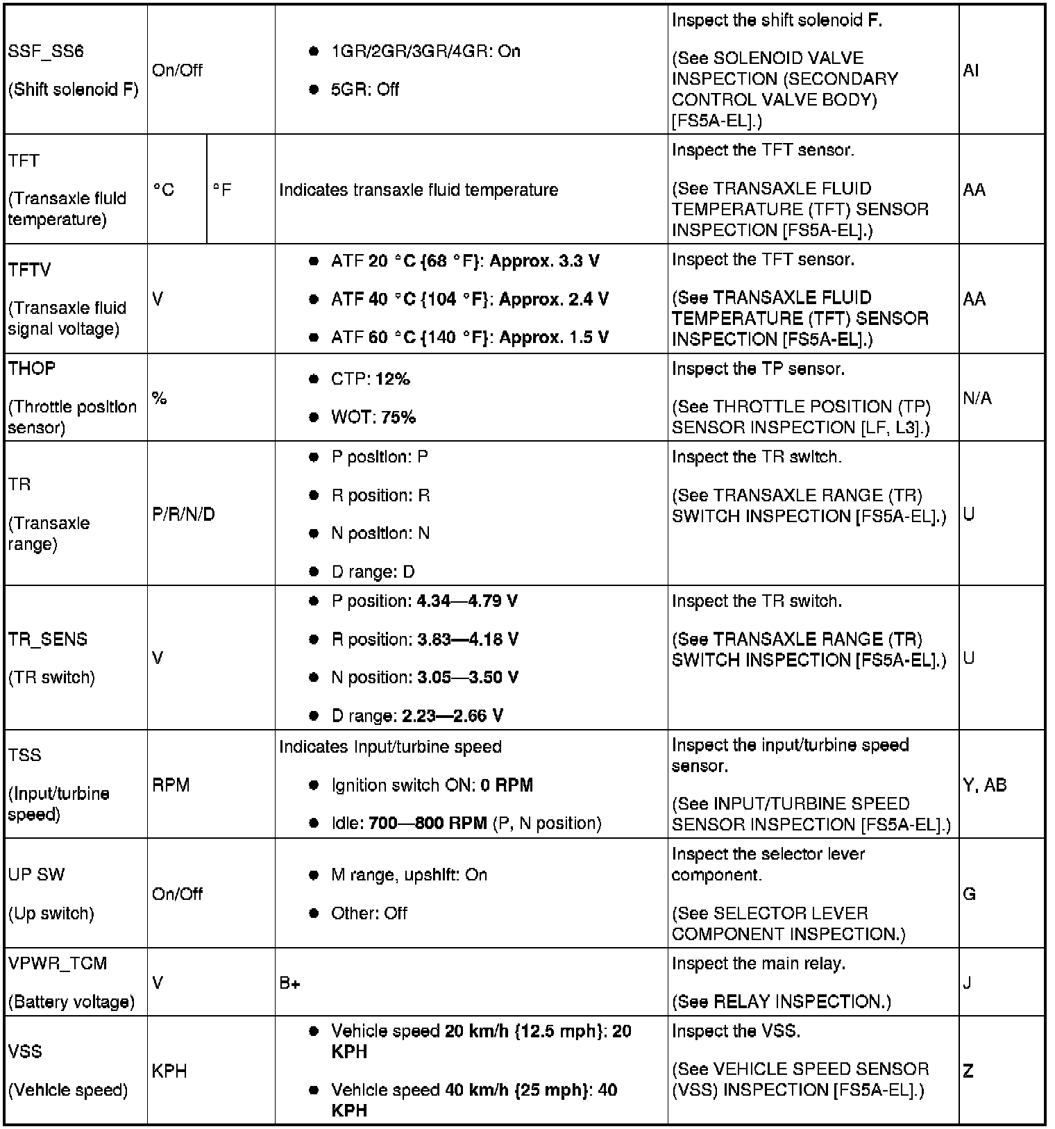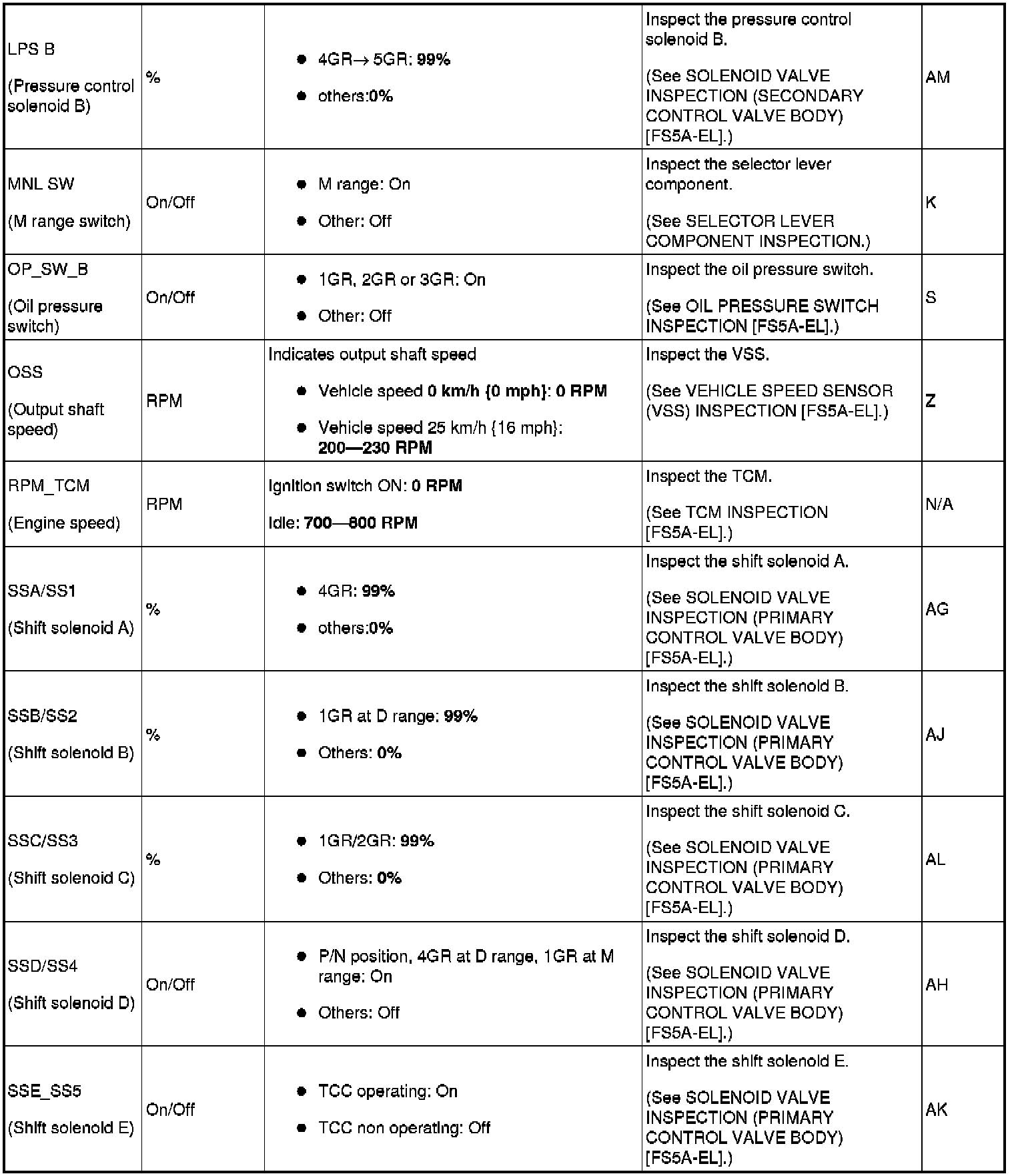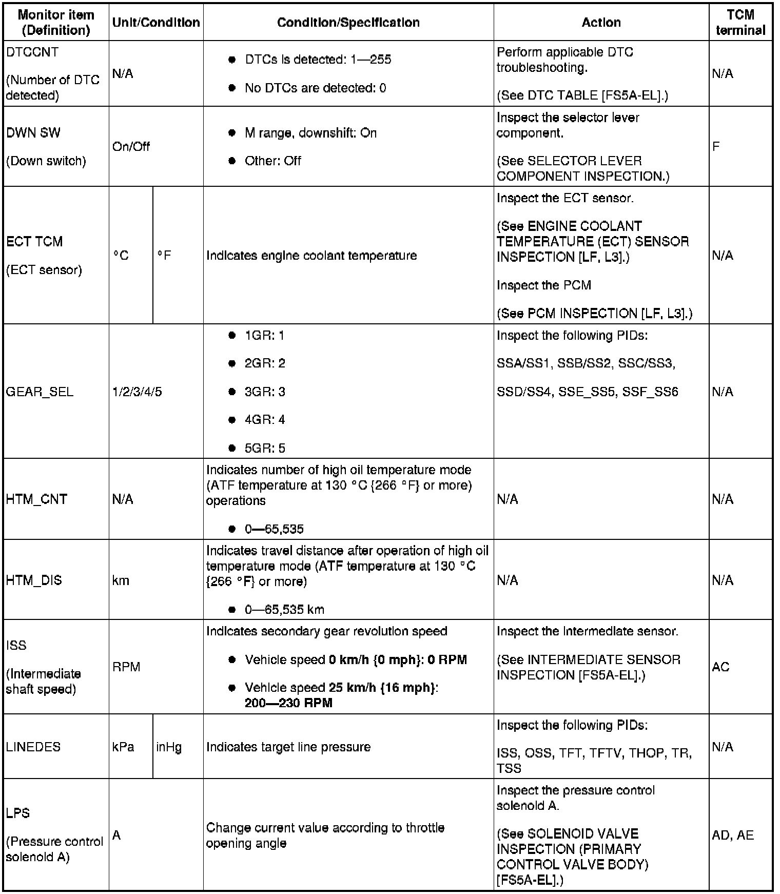 PID/Data Monitor Tables [FS5A-EL]