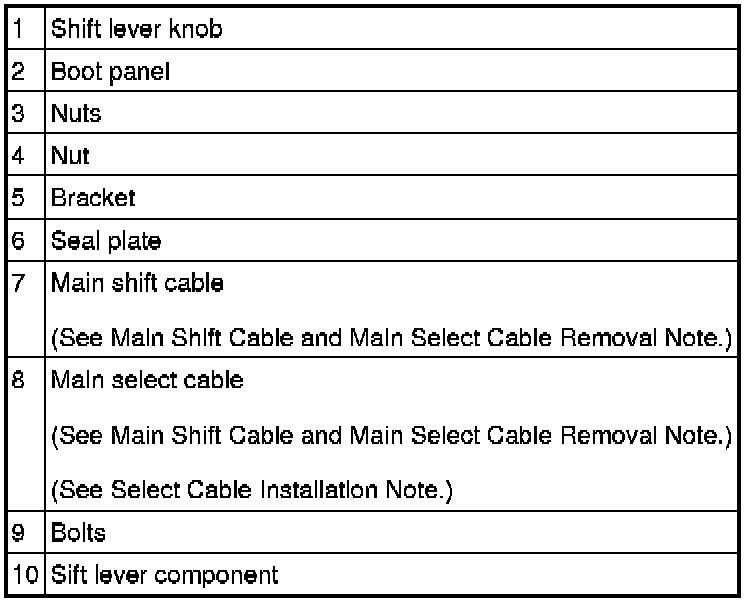 Main Shift Cable and Main Select Cable Removal Note