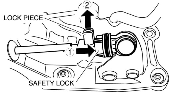 2. Push the safety lock, then unlock the lock piece of the select cable in the order shown in the figure.