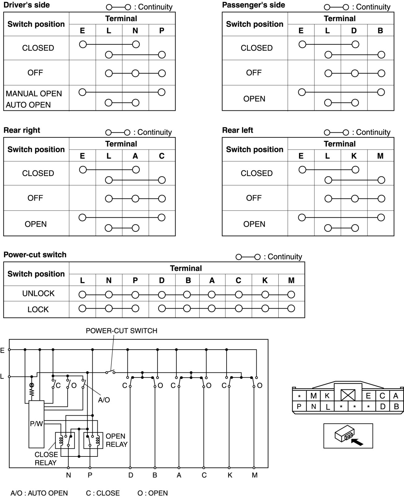 1. When inspecting the passenger-side and rear power windows, turn the power-cut switch to UNLOCK.