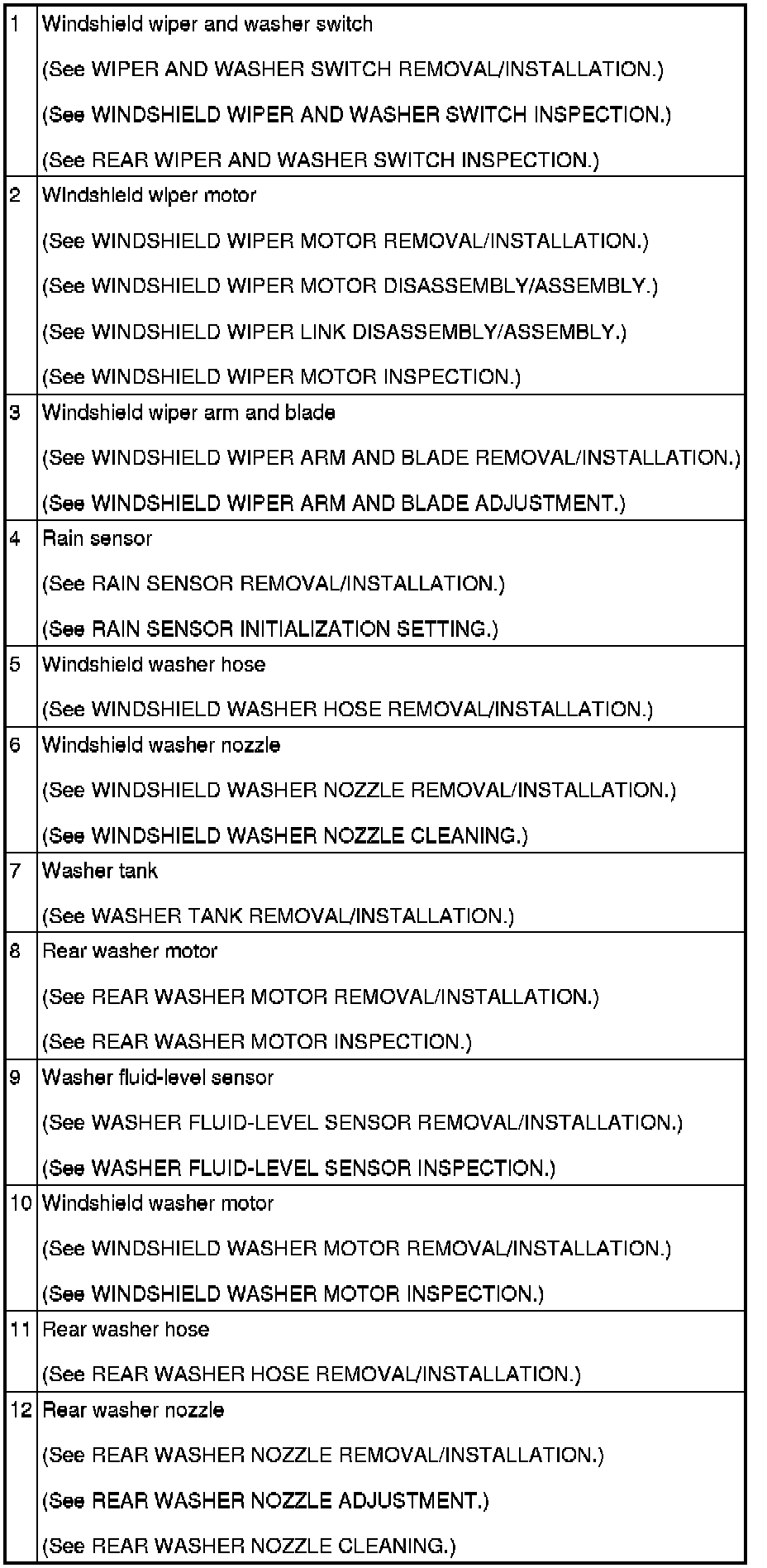 WIPER/WASHER SYSTEM LOCATION INDEX