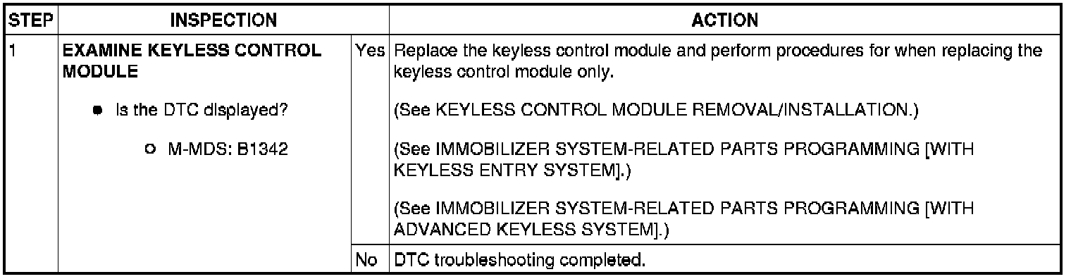 DTC B1342 (KEYLESS CONTROL MODULE) [IMMOBILIZER SYSTEM]