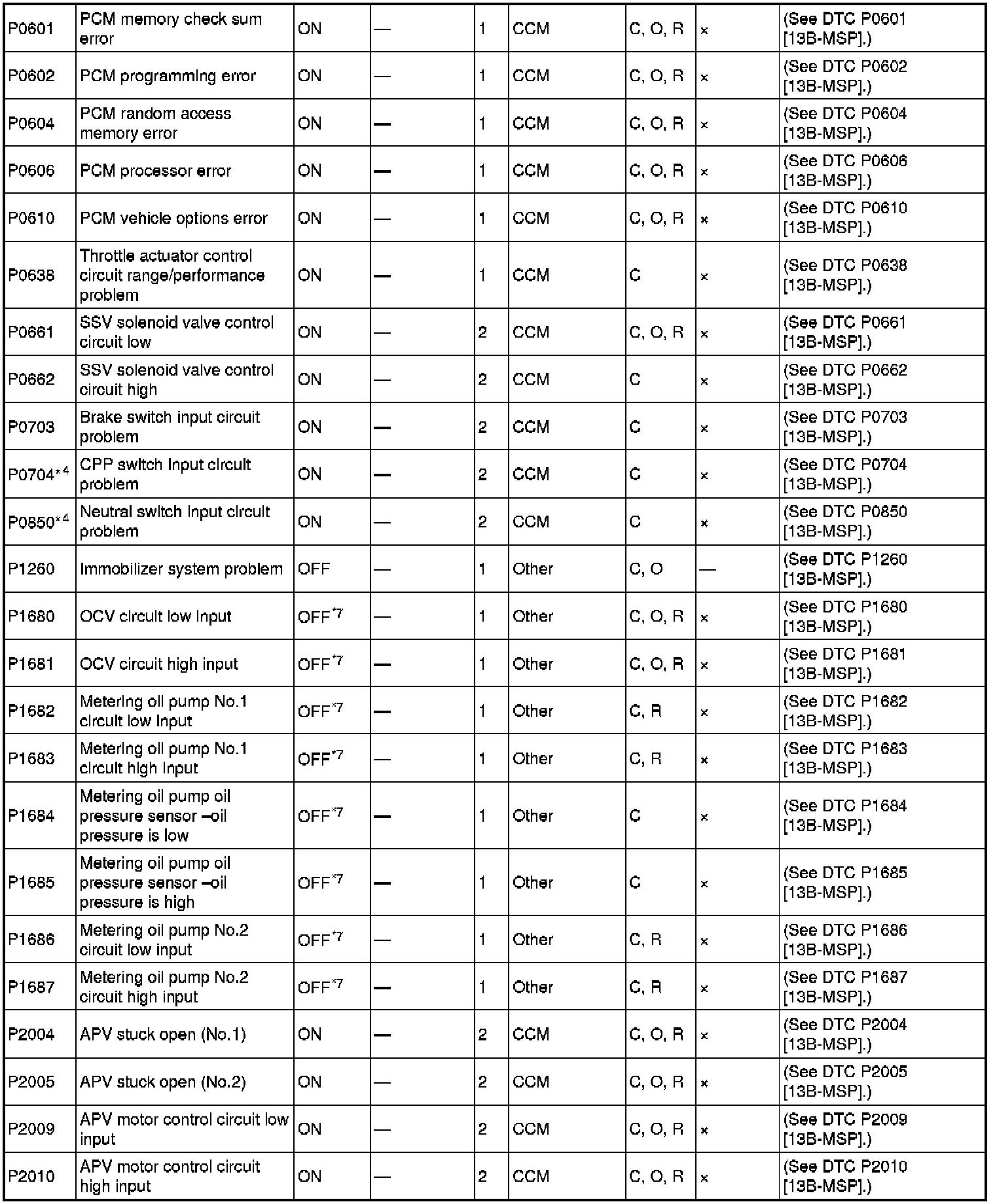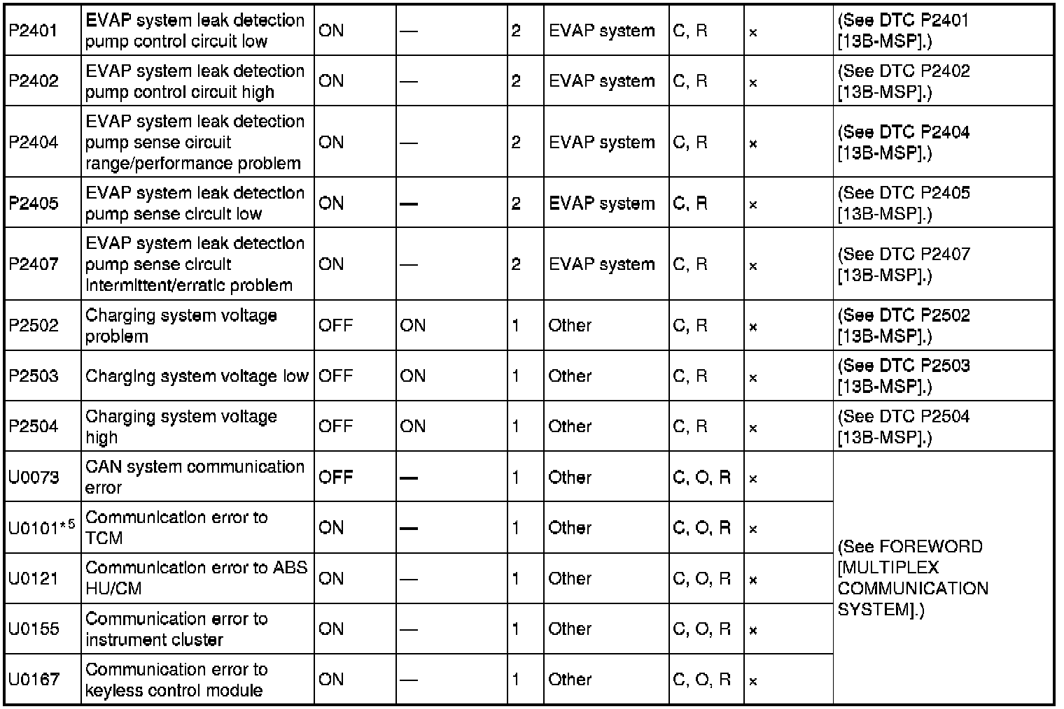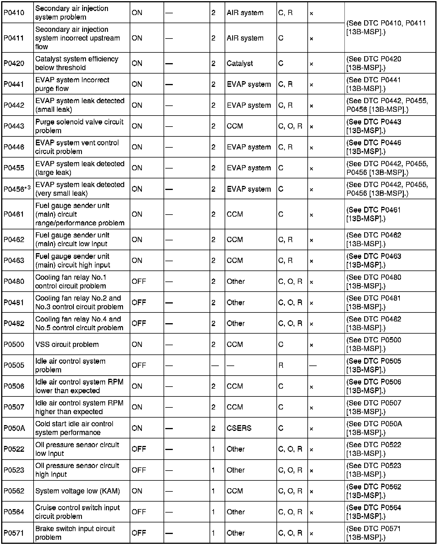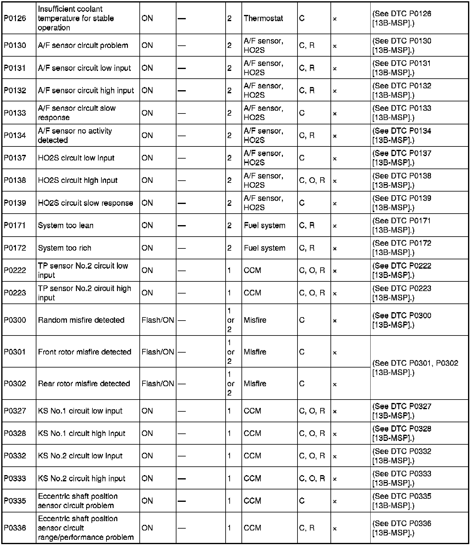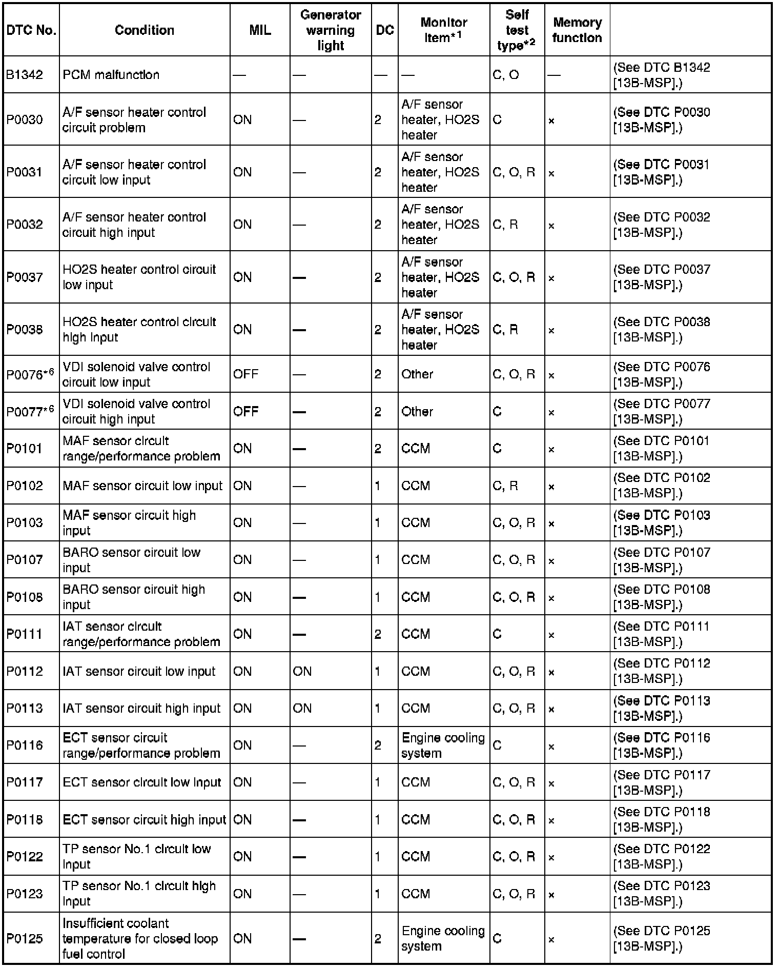 DTC TABLE [13B-MSP]