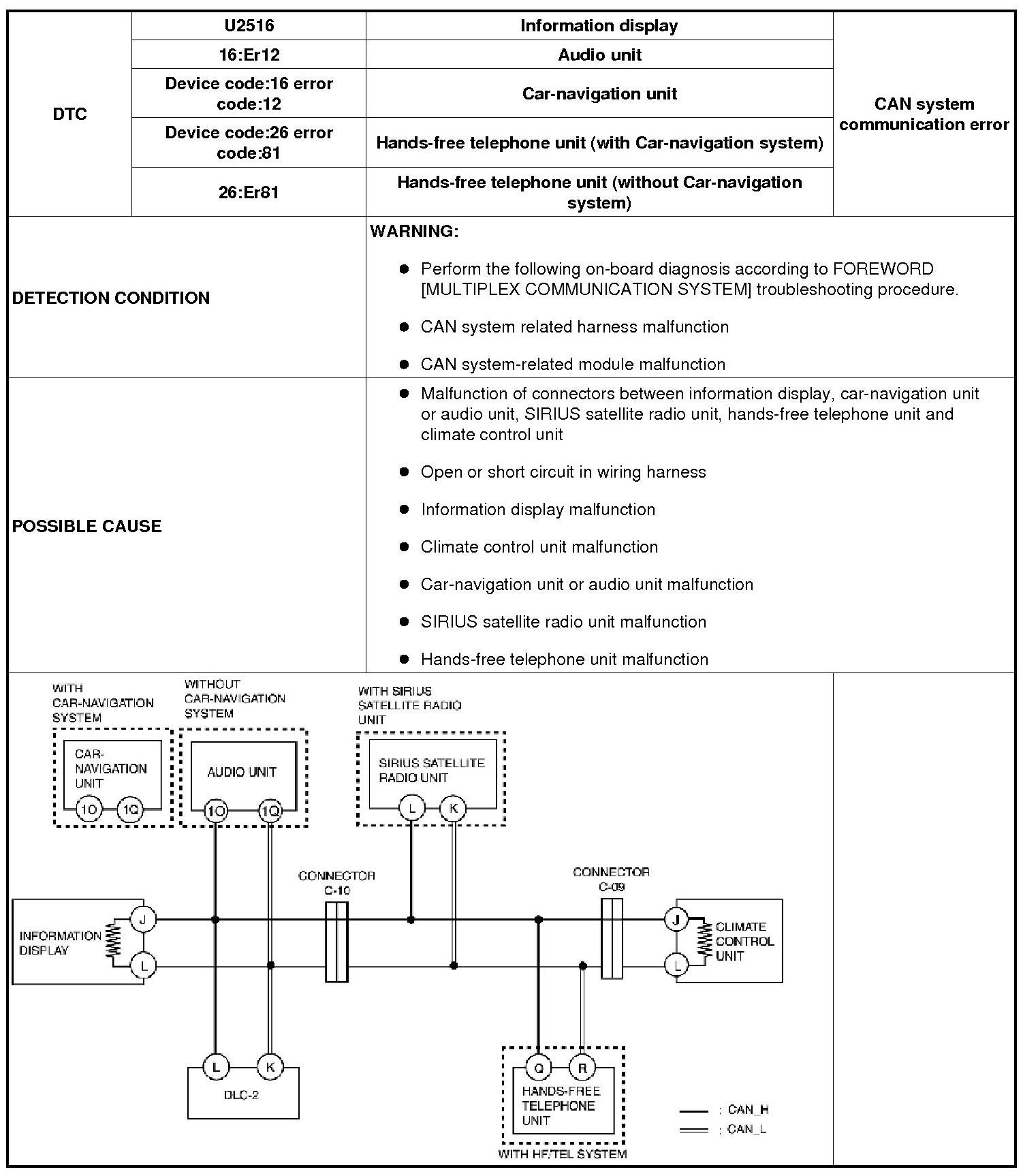 DTC U2516, 16:Er12, DEVICE CODE:16 ERROR CODE:12, 26:Er81, DEVICE CODE:26 ERROR CODE:81 [MULTIPLEX COMMUNICATION SYSTEM]
