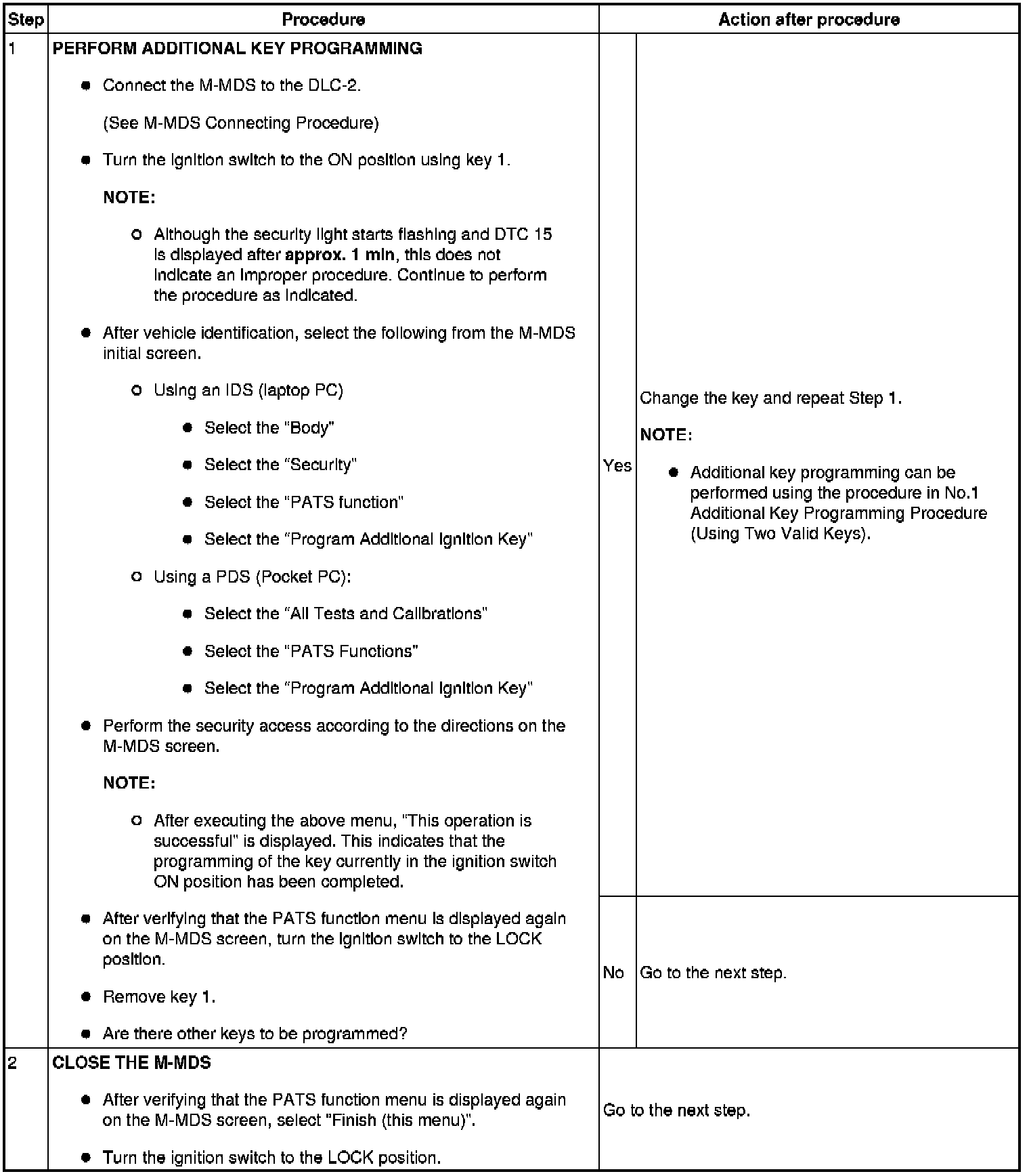 - If a key ID number cannot be programmed and DTC 15 is displayed, the maximum number of programmed keys may have been reached. Verify the number of programmed keys using the M-MDS.