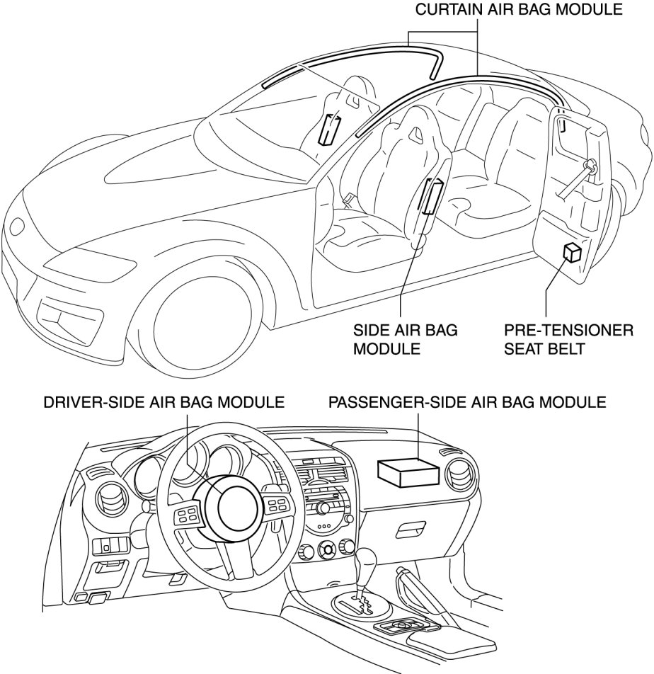- Do not install any radio set-related devices in the area where the air bag module deploys to prevent a secondary accident if the air bag were to deploy.