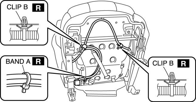 - When performing the procedure with a front seat removed from the vehicle, perform the procedure on a clean rag so as not to damage or soil the seat.