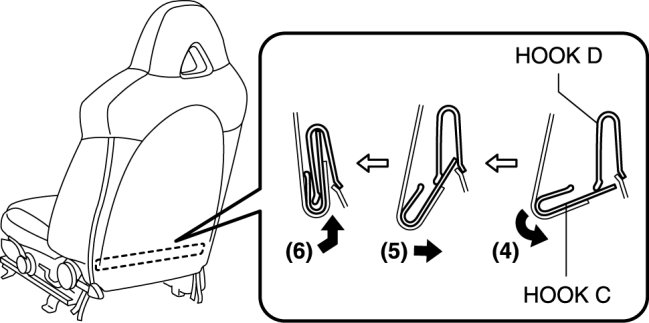 5. Slide hook C in the order of (4), (5), (6) shown in the figure to install it to hook D.