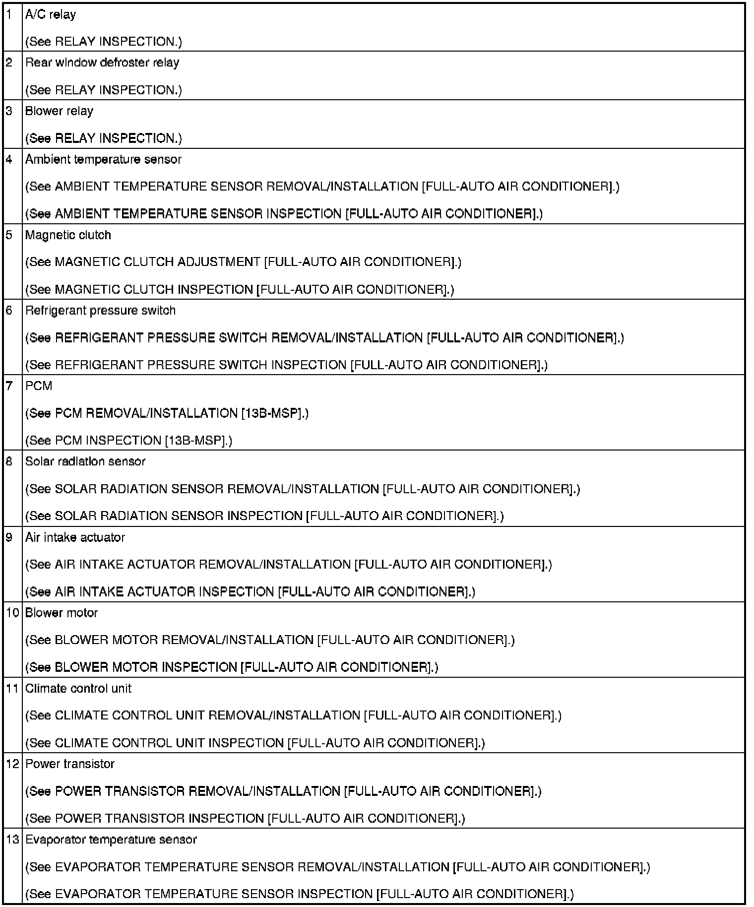 HVAC CONTROL SYSTEM LOCATION INDEX [FULL-AUTO AIR CONDITIONER]