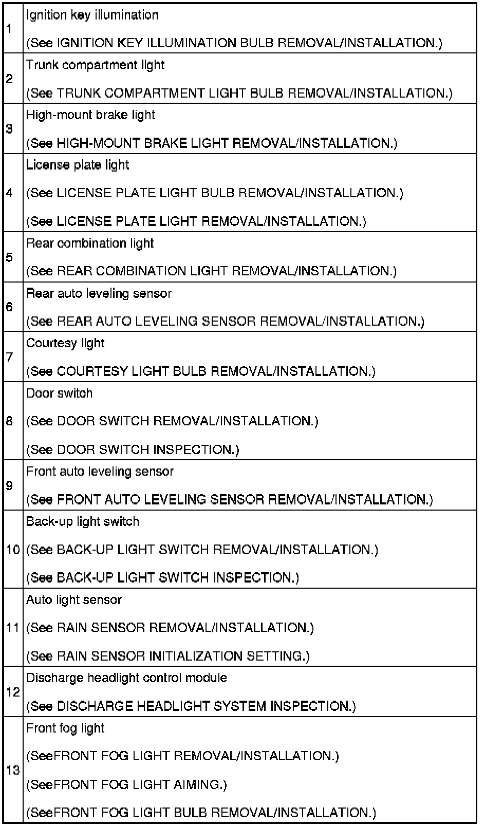 LIGHTING SYSTEMS LOCATION INDEX