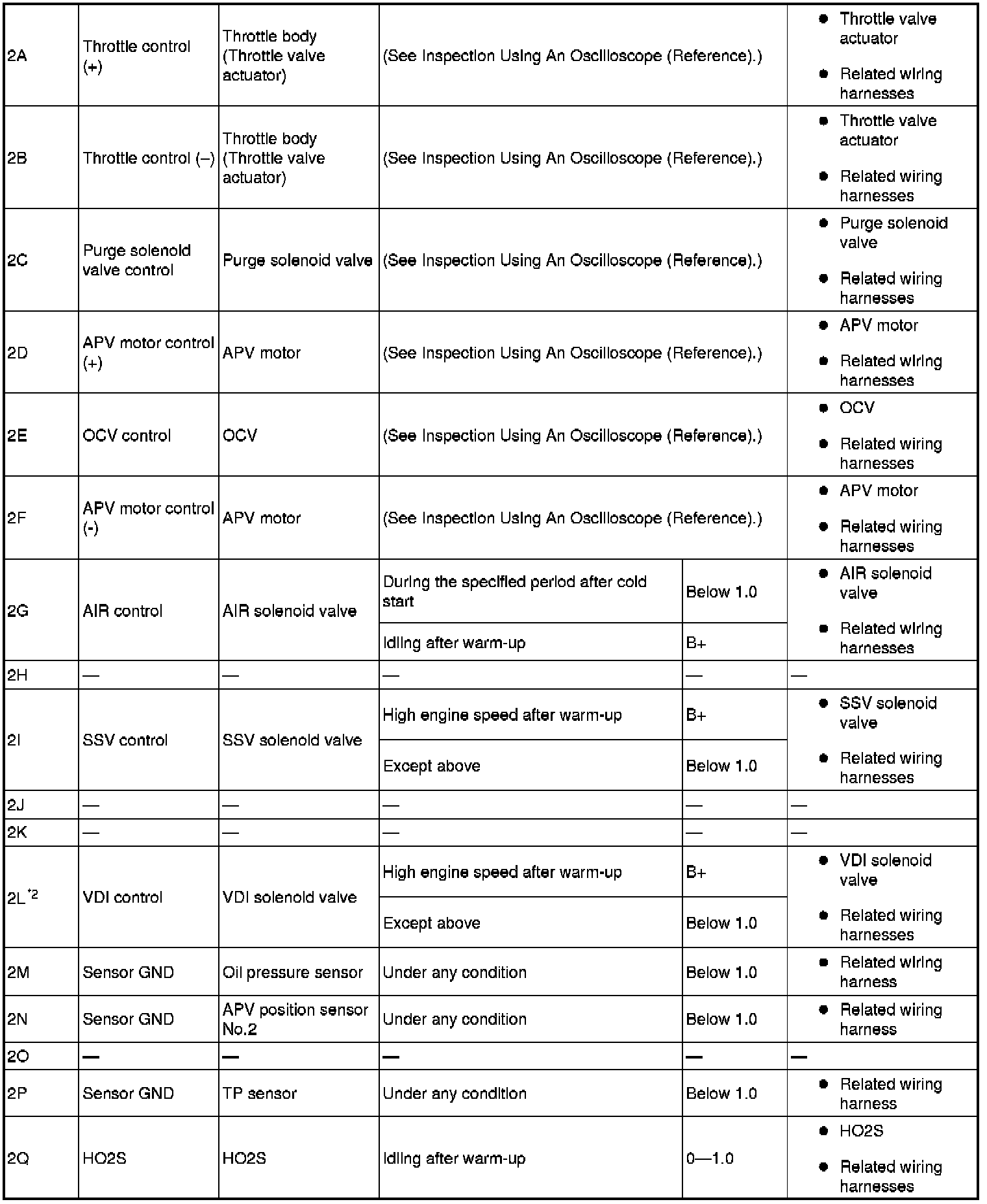 - The duty ratio for the wave pattern can vary with the control conditions. Therefore determine comprehensively where the malfunction occurs among the input systems, output systems, and the PCM.