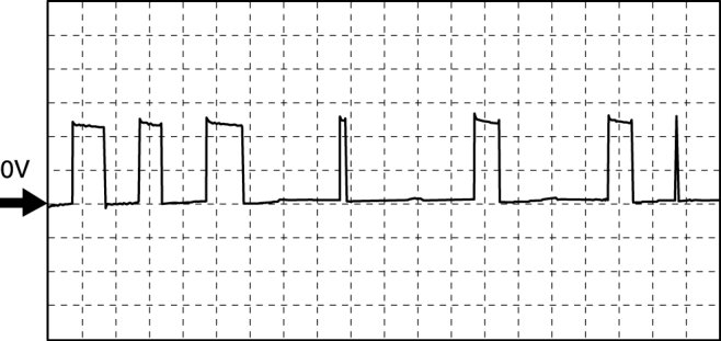 - Oscilloscope setting: 5 V/DIV (Y): 0.4 ms/DIV (X), DC range