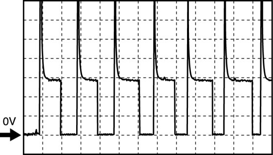 - Oscilloscope setting: 0.5 V/DIV (Y): 1 ms/DIV (X), DC range