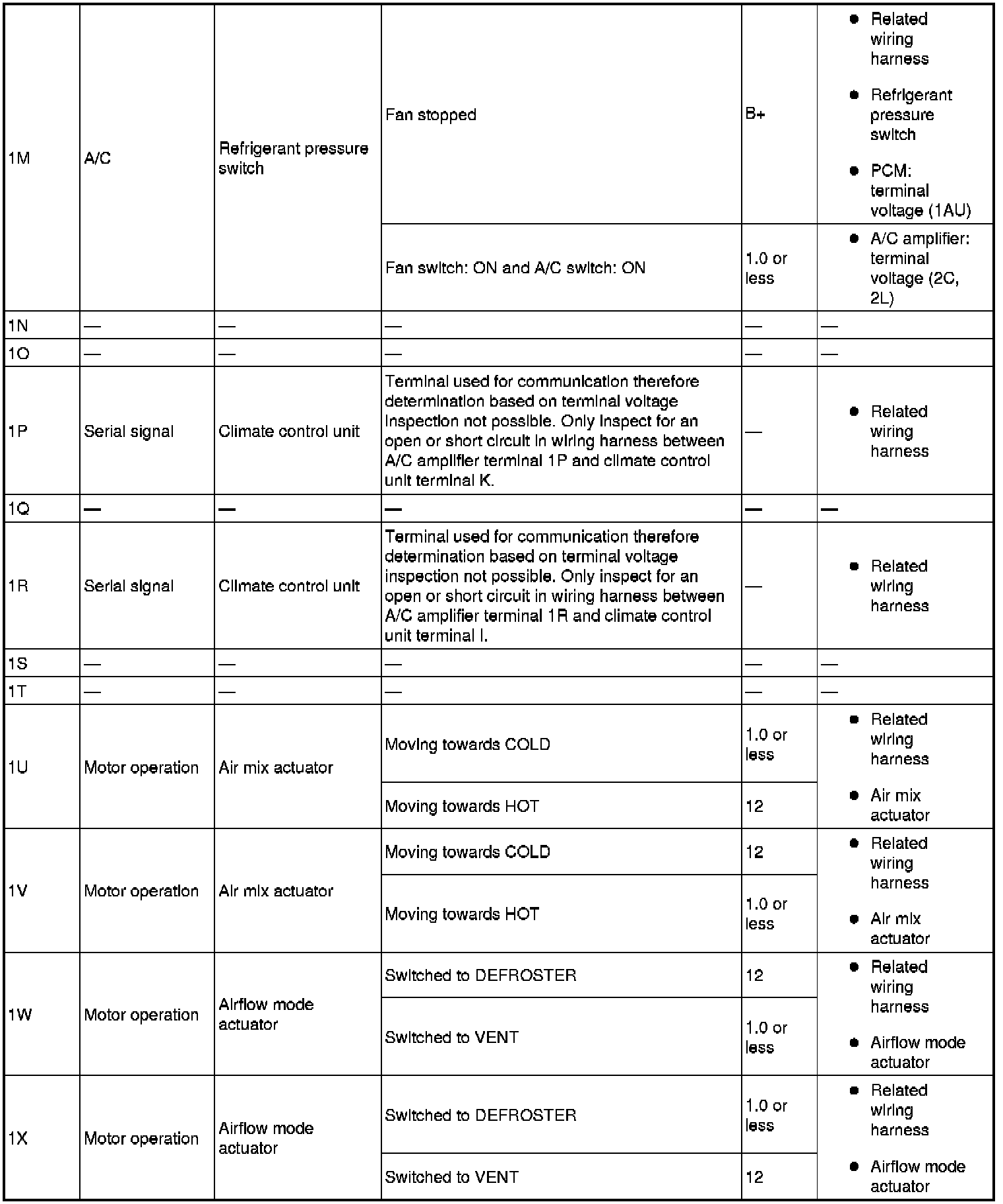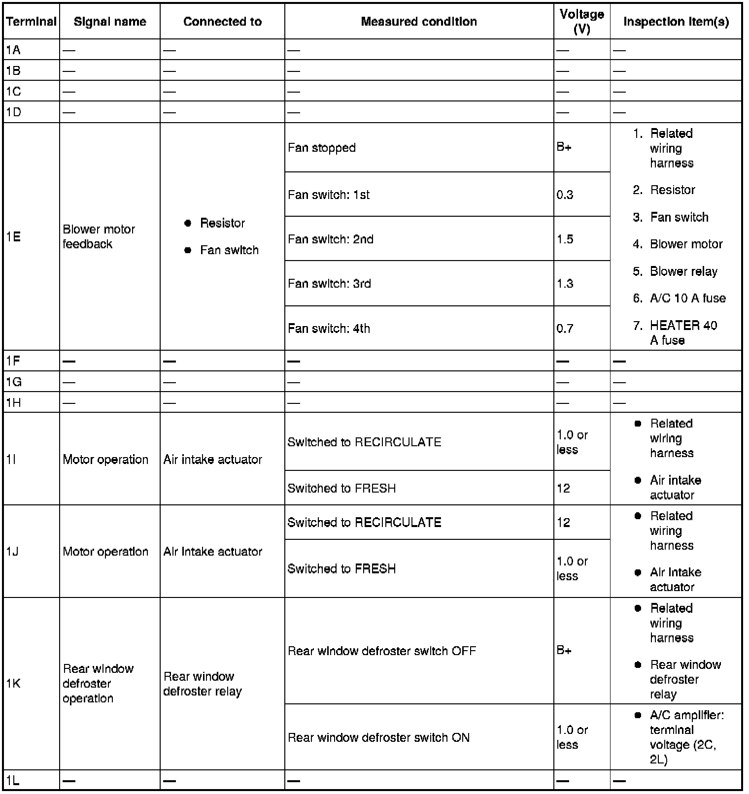 - If the parts under "Inspection item(s)" are found to be normal, replace the A/C amplifier.